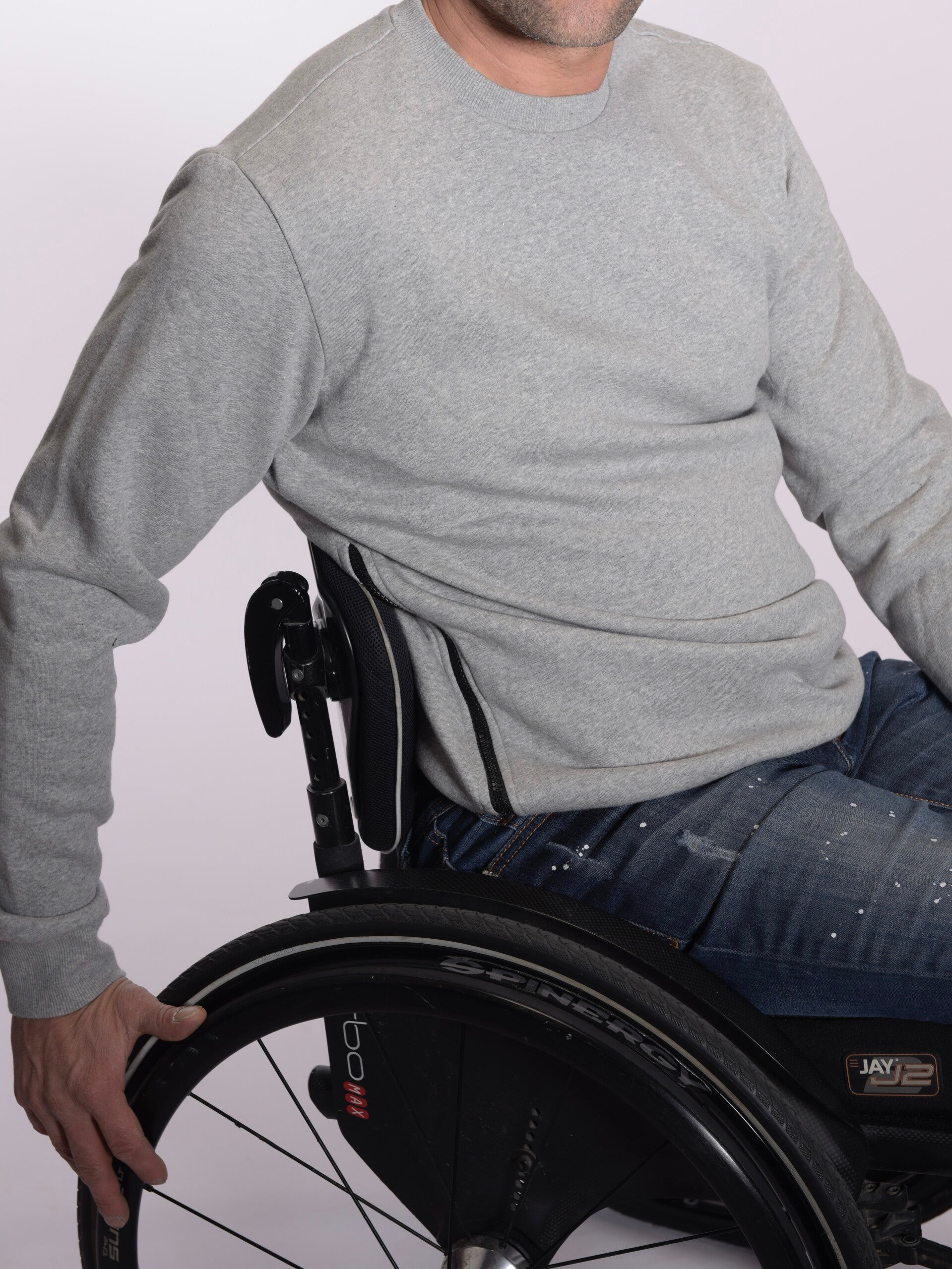 Onze comfortabele grijze sweater is perfect voor dagelijks gebruik en kan aangepast worden naar jouw wensen. De productfoto toont een model met ritsen aan de zijkant, maar je hebt de vrijheid om zelf te kiezen waar je de rits wilt laten plaatsen: zijkant, hals, rug of schouder. Zo combineer je moeiteloos stijl en functionaliteit.